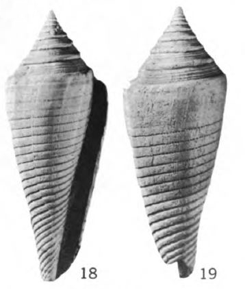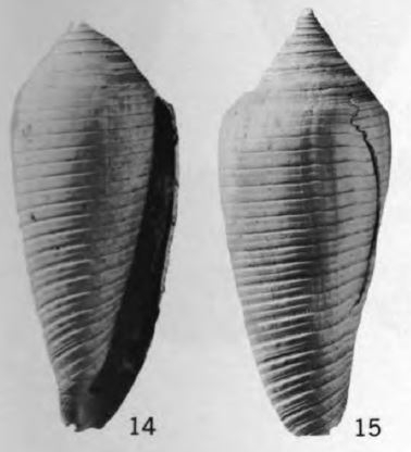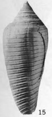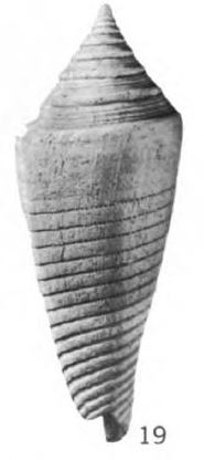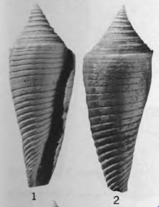 Conus cf. C. aculeiformis Reeve, MacNeil, 1960, U.S. Geol. Survey Prof. Paper 339, p. 121, pl. 6, fig. 29.