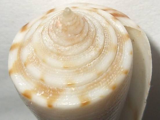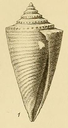 The ornamentation of the upper portion of the whorls around theapex presents a close agreement with Conus acutangulus, as figured by Martin from Java, but the apex of this species is more regularly conical and the shell itself is more robust.