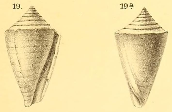 La conchiglia è biconica, con una spira alto, che si compone di nove spire; le sue spire embrionali sono lisce non sono nettamente separabili dalle spire centrali, poiché queste ultime, oltre a singole strisce spirali molto indistinte, mancano anche della scultura. I passaggi sono curvi appena percettibili; il profilo della spira è puramente conico sagomato o leggermente concava, la sutura affilata. La spira finale è molto affilata sul retro, la sua sezione davanti alla linea di cucitura è appena curva nel profilo, solo leggermente ristretta vicino alla fronte e dotata qui di solchi a spirale individuali. Le linee di crescita indistinte sul filo indicano una sezione posteriore debole dell'apertura della bocca. La scultura forse risulta più evidente in individui meglio conservati.