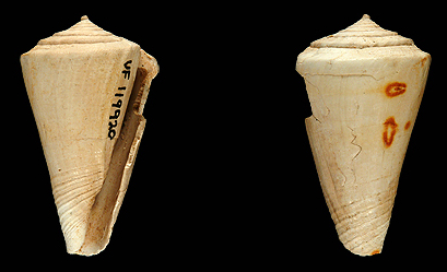The only known shell material of Conus alleni is the holotype (from Grant Parish, Louisiana); the other three specimens are from Florida and all consist of external molds. This taxon was apparently rare, especiallv outside of Florida. We recognized this new form from the moldic Floridian material before we—by chance—discovered the similar shell from Louisiana in the FLMNH collections.