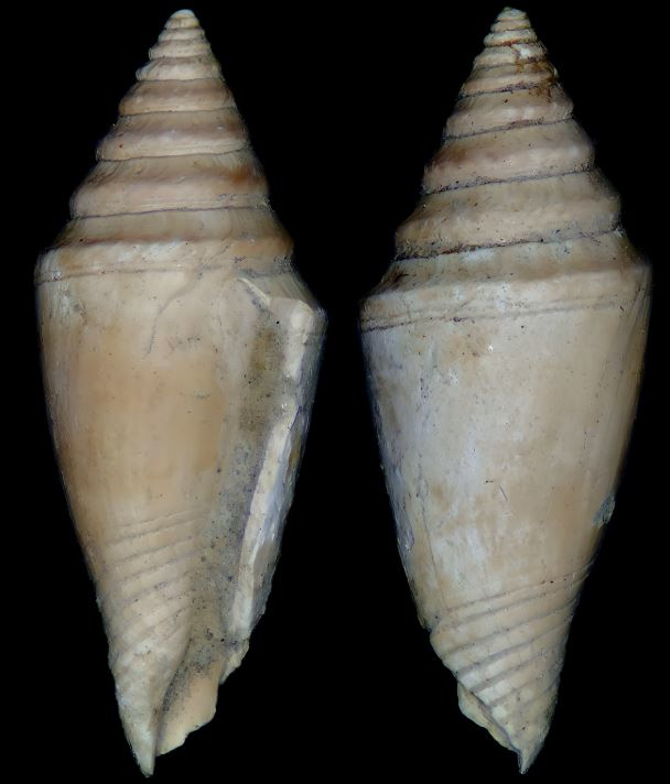Conchiglia di piccole dimensioni, dal corpo allungato: sono qui illustrati 3 esemplari di 19.0 , 13.7 e 15.6 mm. L’esemplare tipico presenta una spira molto svolta che sembra essere in realtà una forma leggermente abberrante. Sono presenti striature trasversali lungo tutto l’ultimo giro.