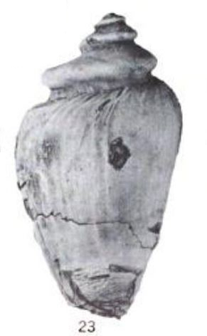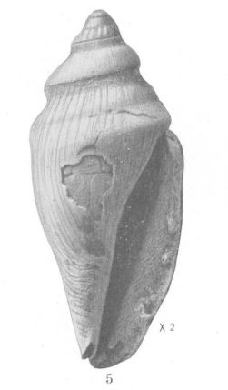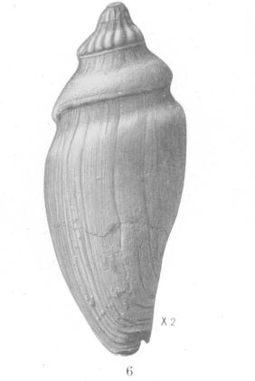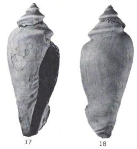 Discussion (3). The holotype of Liopeplum canalis (Conrad) is not present in the collections of the Academy of Natural Sciences of Philadelphia and is evidently lost. Conrad's description is short and his illustration is of an incomplete specimen. The speci-men here figured on plate 43, figure 23, from the type locality on Owl Creek, Tippah County, Miss. (loc. 46), appears to be close to the type specimen as illustrated. Other specimens, however, show a gradation to a some-what slimmer more elongate form, as is exemplified by the topotype figured on plate 43, figure 17. Despite the disparity in proportions these specimens all show affinities in the possession of the strong callus ridge that overhangs the shoulder of the succeeding whorl and thus develops a deep channel. The closest related form to this species appears to be Liopeplum tabulatum Stephenson, from the Nacatoch Sand of Texas, but that species is shorter and proportionally broader with a less well developed channel. Though L. thoracicum Stephenson, from the Black Creek Formation of Texas, has a deep channel and a well-developed callus ridge, its body is constricted anteriorly to a narrower siphonal canal and has a more strongly developed shoulder.