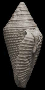 biconical, thick-shelled Hemiconus with flat-sided whorls, ornamented