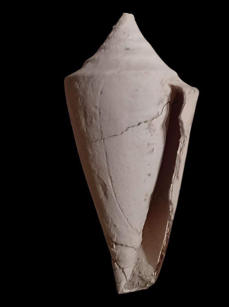 Una conchiglia con la scultura completamente conservata e la bocca