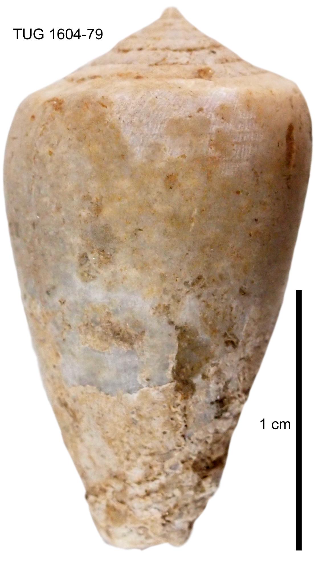 Harzhauser & Landau (2016) described the morphological variation of Conus fuscocingulatus and briefly characterised its colour patterns. We consider that our material belongs to this species and expand the colour pattern description. Our specimens show a diversity at the angulation (Fig. 39A, E) and width (Fig. 39D, F) of the shoulder, as well as at the height of the spire (Fig. 39B, G) (Table 17). Nevertheless, other characteristics such as the dense spiral cords and grooves on the anterior part of the last whorl, the shallow subsutural flexure (Fig. 40N), and the very clear colour pattern are indicative of the conspecificity of the specimens. Usually, the spire whorls of the specimens are eroded and only few beads and indistinct swellings are visible (6)