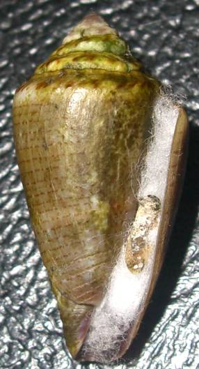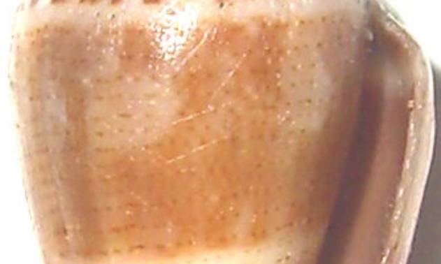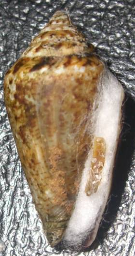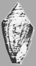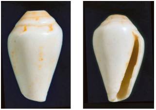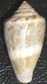 Conus mediterraneus var. franciscanus mm. 22,5 x 12,6 luglio 1975 – Alghero (Sardegna) piaggiato [AZRC N. 547-02] |