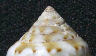 E’ una conchiglia robusta, con spira conica più o meno elevata. I giri sono ornati da strie spirali, che non sempre sono conservate. La colorazione, non sempre presente negli esemplari fossili, consiste in macchie ocracee sinuose, larghe e disposte in modo irregolare, ma, come sopra detto, può essere molto variabile. L’ultimo giro è percorso la linee spirali lungo le quali puntini o trattini di colore marrone, verde oliva, si alternano a trattini di colore bianco.