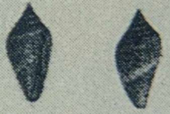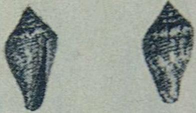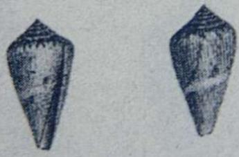 Observations. — Cette espèce, absolument distincte des précédentes (Conus submediterraneus) se reconnaît facilement : à son galbe beaucoup plus étroitement allongé; à sa spire plus haute et plus conique; à son dernier tour, plus grêle, moins trapu, etc. Comme elle nous paraît être presque aussi commune en Corse que le Conus Mediterraneus on peut supposer que Payraudeau a confondu ces deux formes. Requien l'a considérée comme simple variété acuta. On peut observer chez le Conus Galloprovincialis les mêmes variations ex-forma et ex-colore que chez le G. Mediterraneus. Chez la var. minor, comme dans le jeune âge, les différenciations entre ces deux espèces sont encore plus tranchées. Notre plus grand échantillon provient de Baslia et mesure 32 millimètres de hauteur, pour 16 de diamètre; sa coloration est d'un fond roux un peu rosé, légèrement marbré, mais linéolé de roux sombre. Nous signalerons une autre var. lineolata, chez laquelle le fond est d'un roux jaunacé, verdâtre, faiblement nuancé de brun roux, très nettement linéolé avec une teinte plus foncée que le fond.