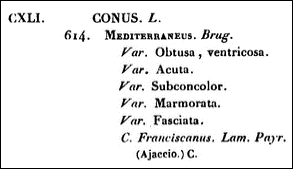 Conus galloprovincialis (Locard, 1886) Conus mediterraneus var. acuta (Requien, 1848)