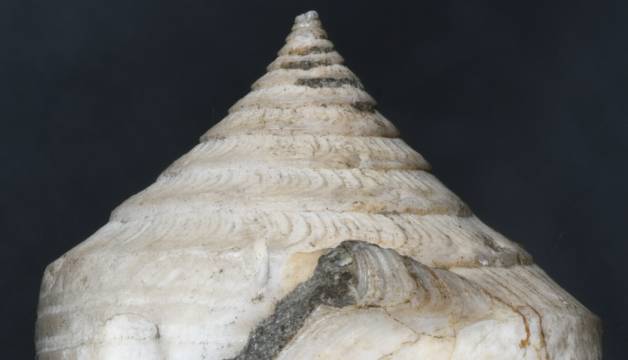 concavely conic spire of about 12 whorls, which are flat, marked with raised,
