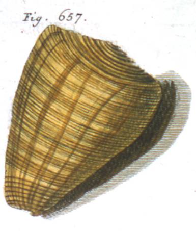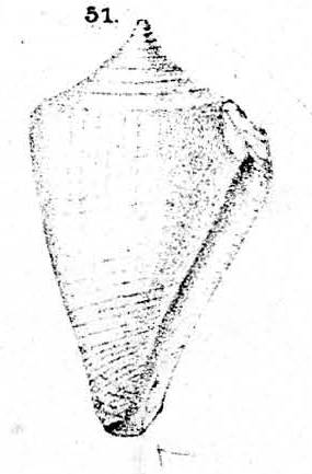 With certain varieties of the recent C. quercinus, which I have for comparison, and of which Reeve l.c. depicts an individual, the fossil shows an almost complete correspondence; only the final turn at the spiral angle is a little more rounded. However, since the shape of the shell of C. quercinus is generally subject to very large fluctuations, I do not believe that this deviation should be seen as a species difference. I consider the fossil to be a variety of C. quercinus that is no longer found in the current fauna (4).