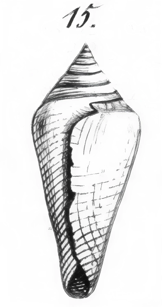 Conus (turritus) testa subfusiformis, infernè et versùs apicem sulcato-punctata; spirá conico-acuta; anfractibus obliquis.n.