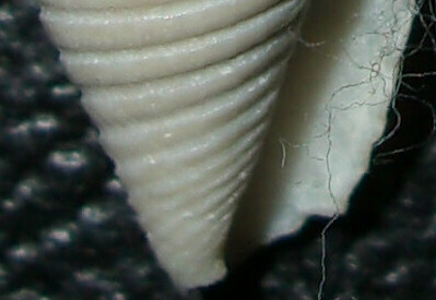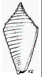 Si tratta di una piccola conchiglia sub-biconica e presenta 3 giri nucleari ed 8 giri postnucleari. La spira, che costituisce circa 1/3 della conchiglia, è turrita ed ha un profilo leggermente concavo, conico nella prima parte. I giri nucleari sono lisci, simili a porcellana ed arrotondati. I primi giri sono mediamente carenati. Le spire sono ornate con linee di accrescimento arcuate e microscopiche linee spirali. Il corpo della conchiglia ed il canale sotto la spalla sono ornati con 17 larghe bande spirali lisce e piatte, più larghe sopra e più piccole sotto, separate da profonde scanalature la cui larghezza è circa 1/3 delle bande (1).