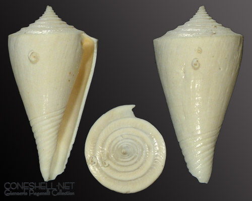 Conus demiurgus Dall attains a larger size, has a lower spire, with a flattened rather than a concave shoulder even in the later whorls, and is more attenuated anteriorly.